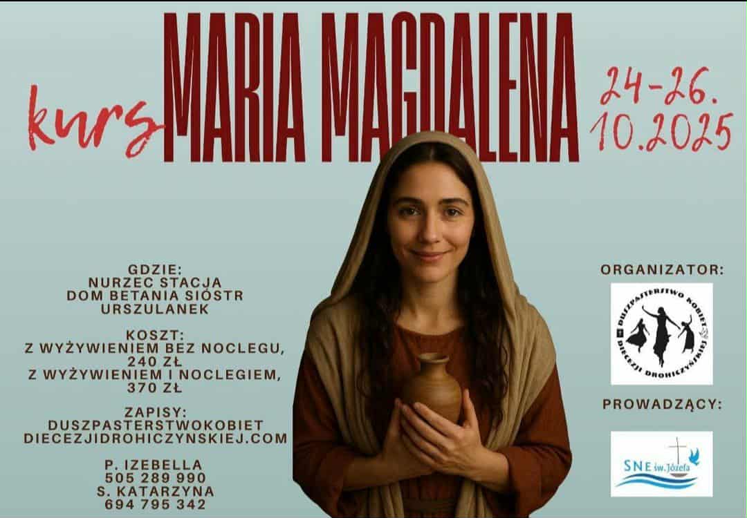 👉Chcesz odkryć na nowo co to znaczy być kobietą? Chcesz dowiedzieć się, co o tym myśli Bóg? Na kursie "Maria Magdalena" nie tylko ucieszysz się swoją kobiecością, ale i dowiesz się, jak to powołanie realizować na co dzień! Zadbaj o siebie, oderwij się na jeden weekend od pędu życia… Na kursie zatrzymasz się nad swoim wnętrzem, naładujesz baterie, uporządkujesz relacje, fałszywe myślenie na swój temat…i wiele innych spraw, które być może zamiatasz pod dywan od lat. Spotkasz Jezusa, który patrzy na Ciebie i widzi Twoje piękno.